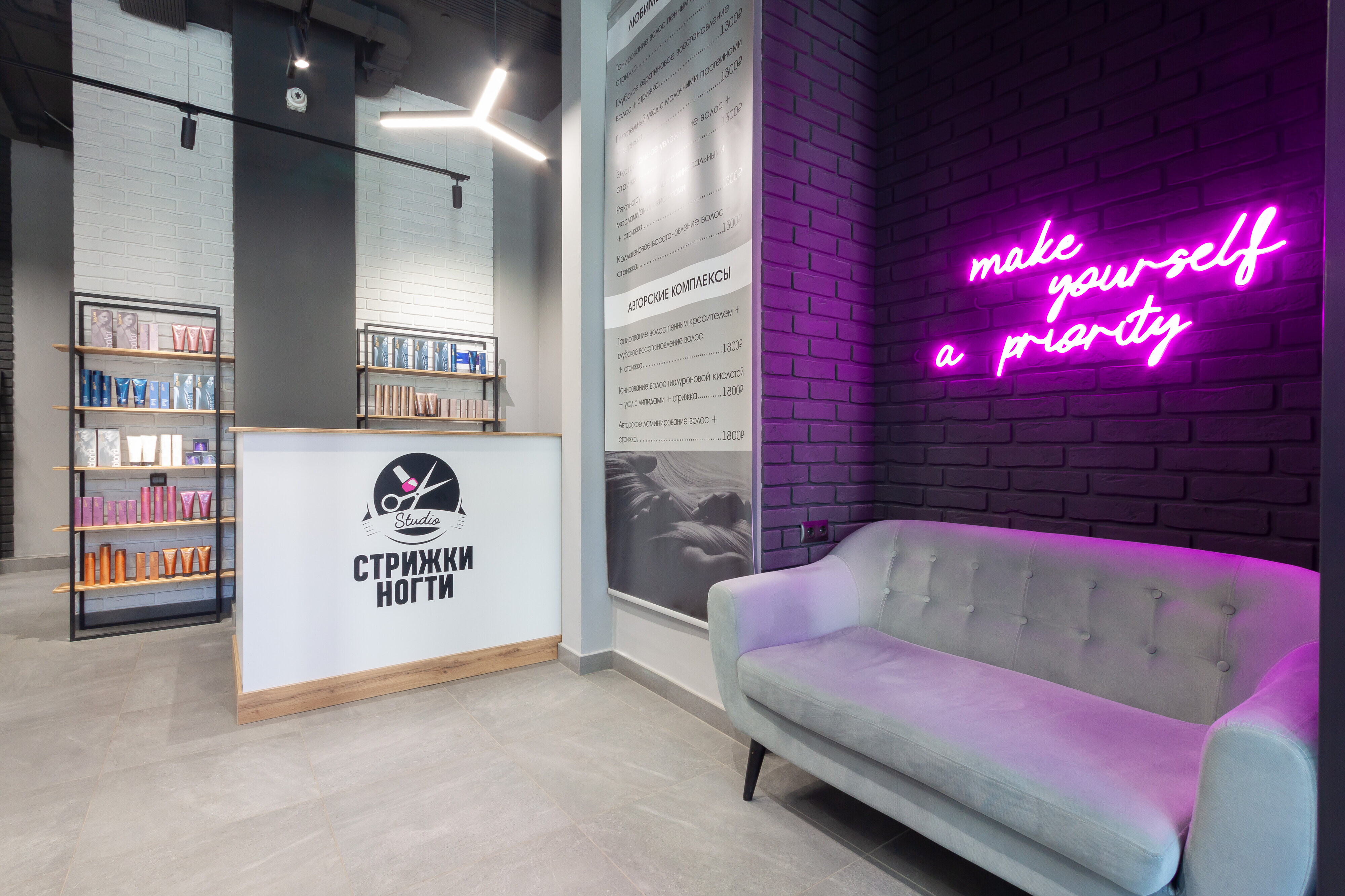В студии чистая и уютная обстановка. Специалисты сделали всё быстро, качественно и красиво. Маникюр великолепно держится в течение 10 дней, укладка мне тоже понравилась. Объём продержался весь день, волосы были легкие, не липли и не стояли колом. Всё было современно и аккуратно.